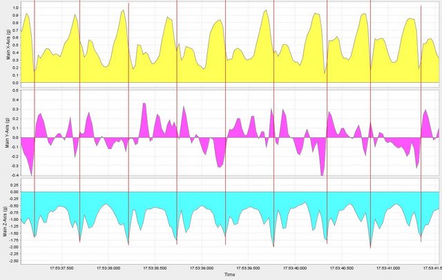 The graphs below are zoomed in on the X, Y, and Z accelerometer readings